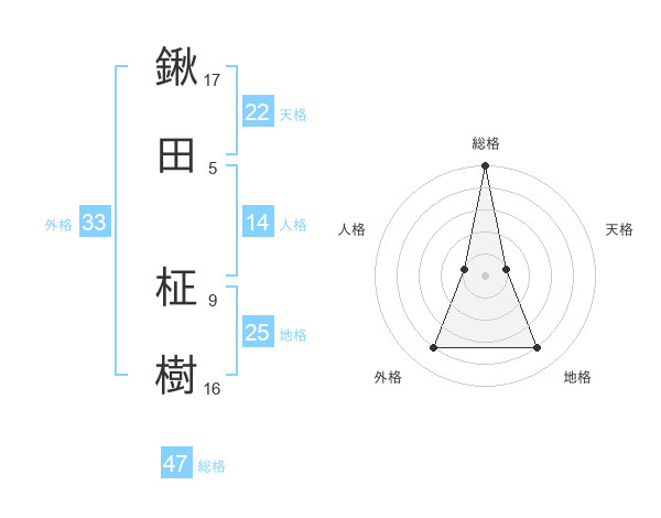 鍬田 柾樹さんの総格は47画の5点!