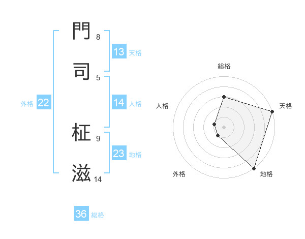 門司 柾滋さんを姓名の画数から五運を鑑定