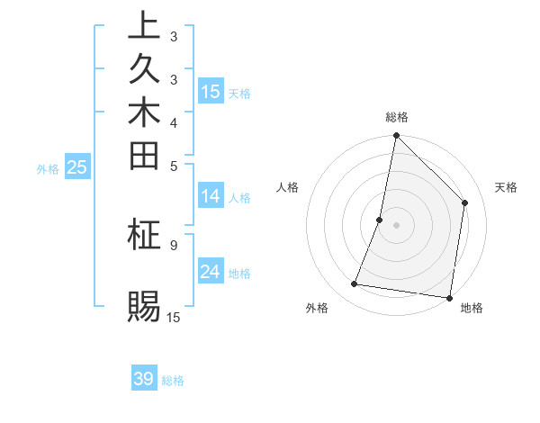 上久木田 柾賜さんの総格は39画の5点!