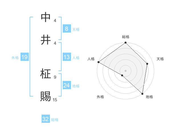中井 柾賜さんの総格は32画の5点!