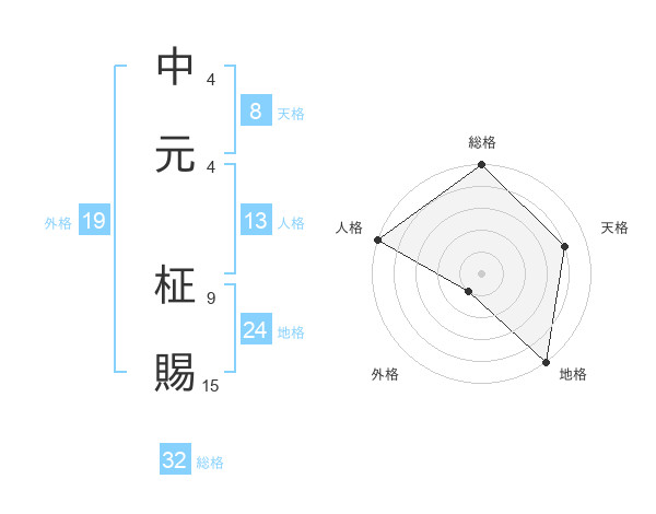 中元 柾賜さんの総格は32画の5点!