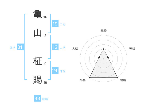 亀山 柾賜さんを姓名の画数から五運を鑑定