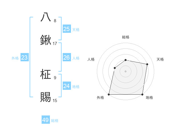 八鍬 柾賜さんの外格は23画の5点!