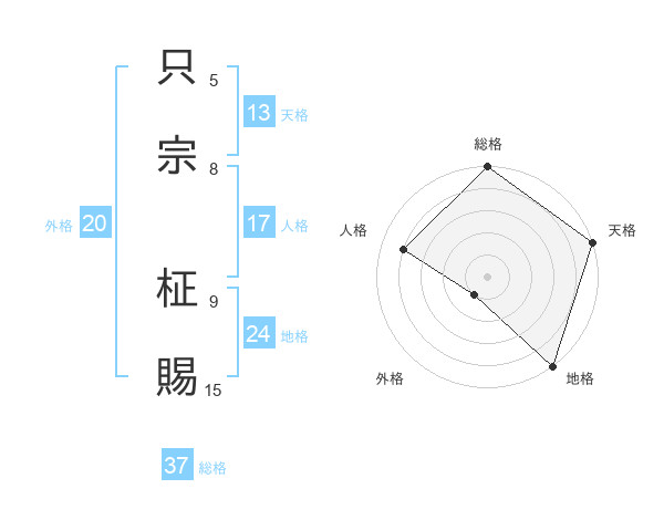 只宗 柾賜さんを姓名の画数から五運を鑑定