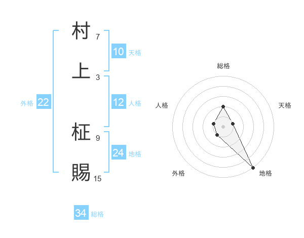 村上 柾賜さんの総格は34画の2点!
