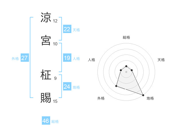 涼宮 柾賜さんを姓名の画数から五運を鑑定