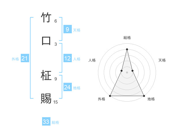 竹口 柾賜さんの総格は33画の4点!