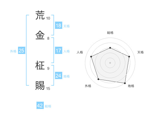 荒金 柾賜さんを姓名の画数から五運を鑑定