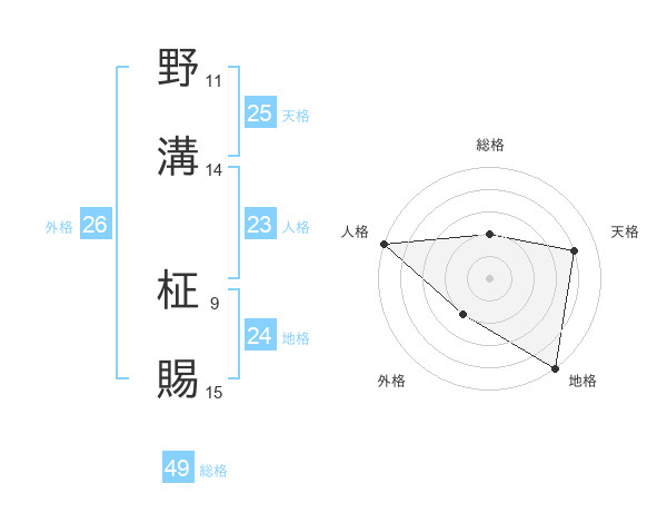 野溝 柾賜さんの地格は24画の5点!