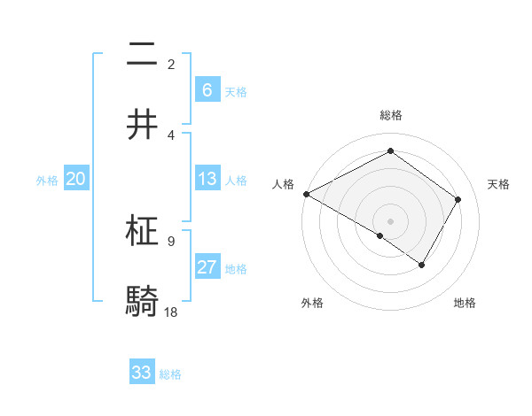 二井 柾騎さんを姓名の画数から五運を鑑定