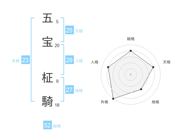 五宝 柾騎さんの総格は52画の4点!