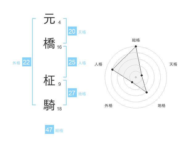 元橋 柾騎さんの総格は47画の5点!