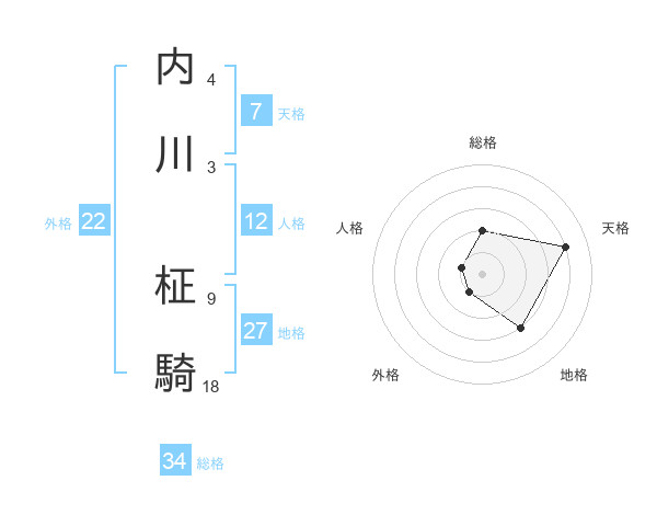 内川 柾騎さんの天格は7画の4点!