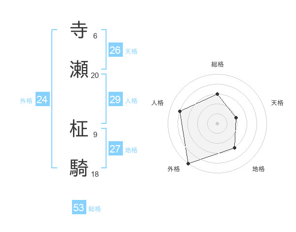 寺瀬 柾騎さんの天格は26画の2点!