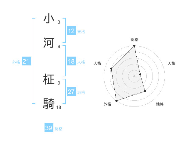 小河 柾騎さんの総格は39画の5点!