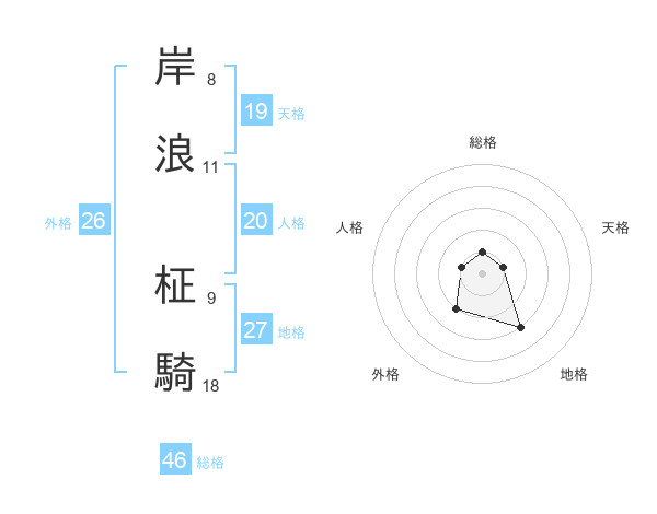 岸浪 柾騎さんの総格は46画の1点!
