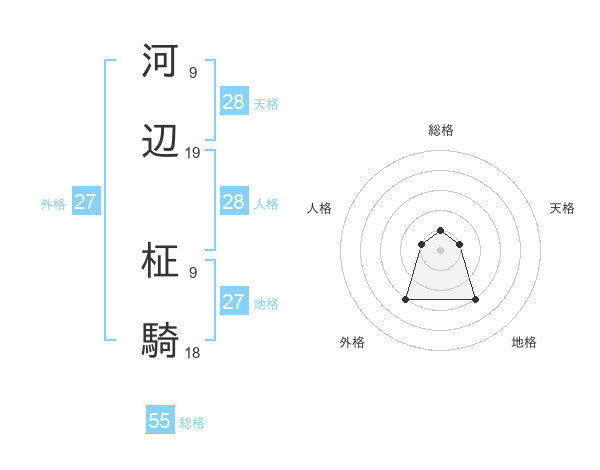 河辺 柾騎さんの総格は55画の1点!