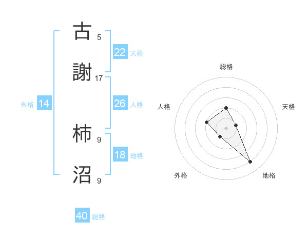 古謝 柿沼さんの総格は40画の2点!