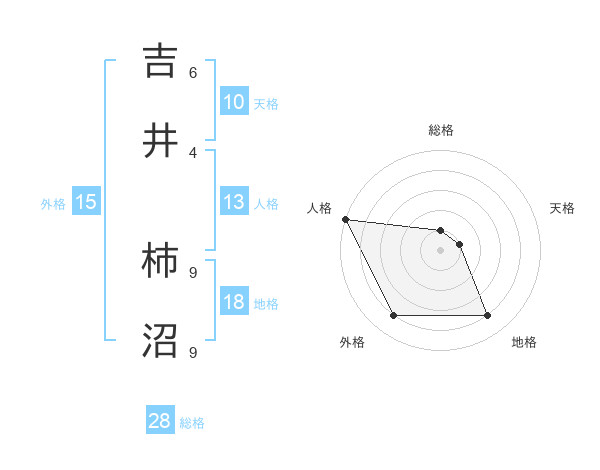 吉井 柿沼さんの総格は28画の1点!