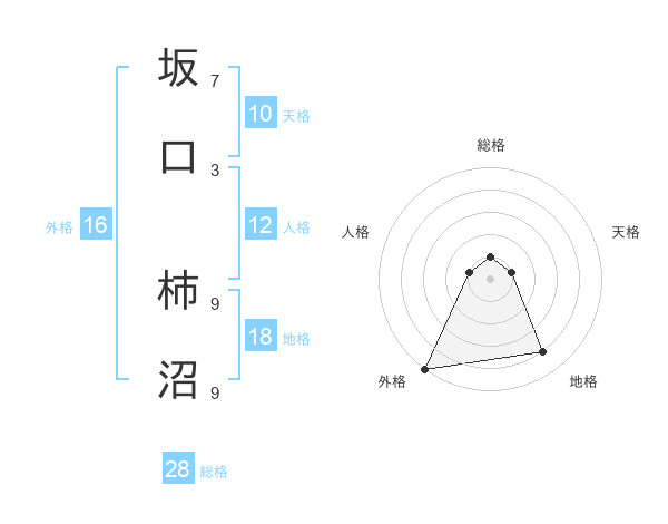 坂口 柿沼さんの総格は28画の1点!