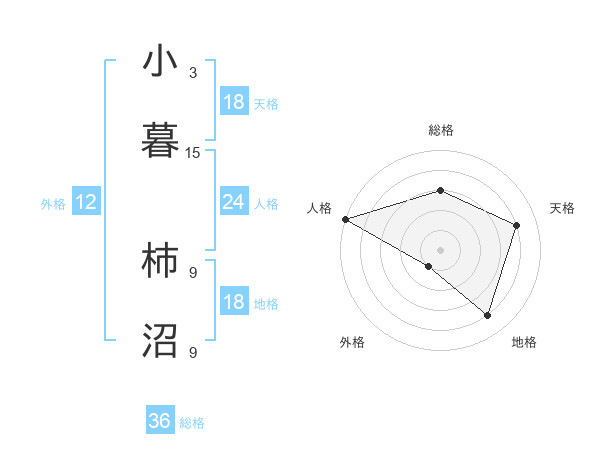 小暮 柿沼さんの天格は18画の4点!
