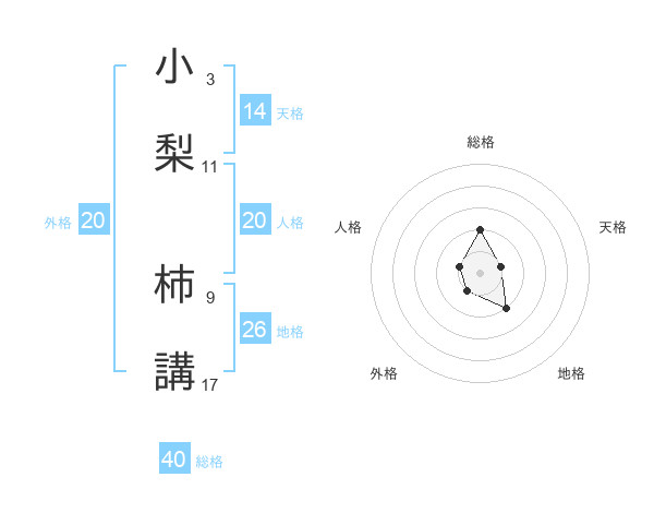 小梨 柿講さんの総格は40画の2点!