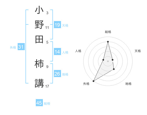 小野田 柿講さんを姓名の画数から五運を鑑定