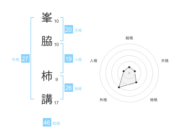峯脇 柿講さんを姓名の画数から五運を鑑定