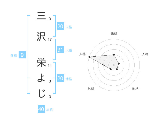 三沢 栄よじさんを姓名の画数から五運を鑑定
