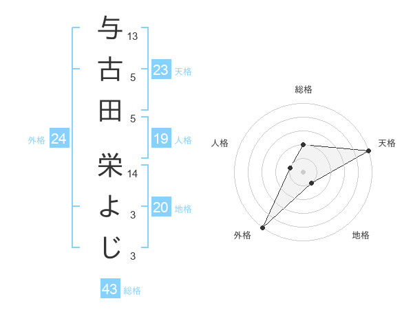 与古田 栄よじさんの天格は23画の5点