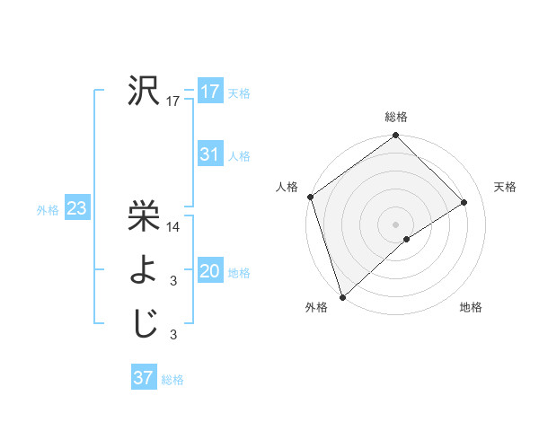 沢 栄よじさんの外格は23画の5点!