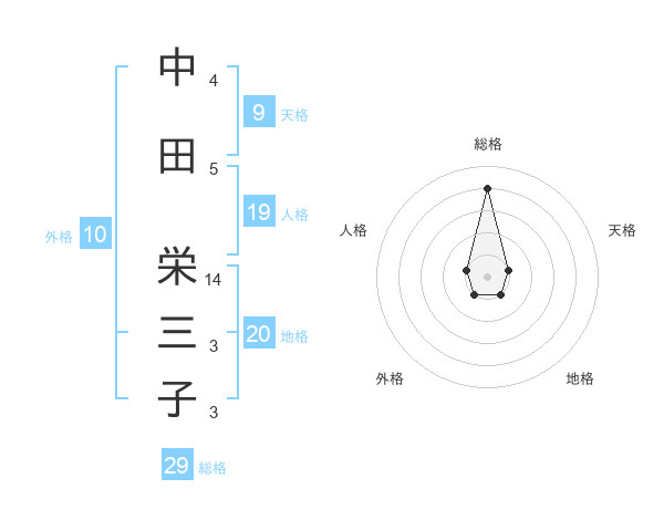 中田 栄三子さんを姓名の画数から五運を鑑定