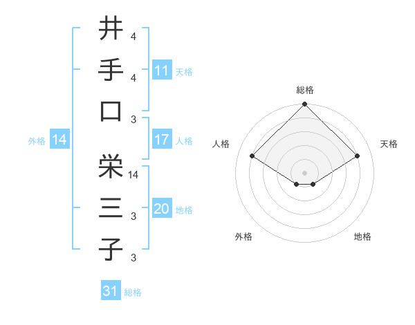井手口 栄三子さんを姓名の画数から五運を鑑定