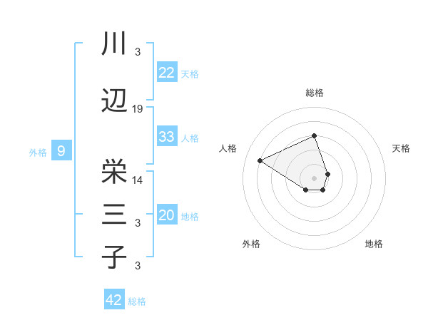 川辺 栄三子さんを姓名の画数から五運を鑑定