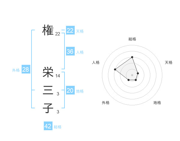 権 栄三子さんの外格は28画の1点!