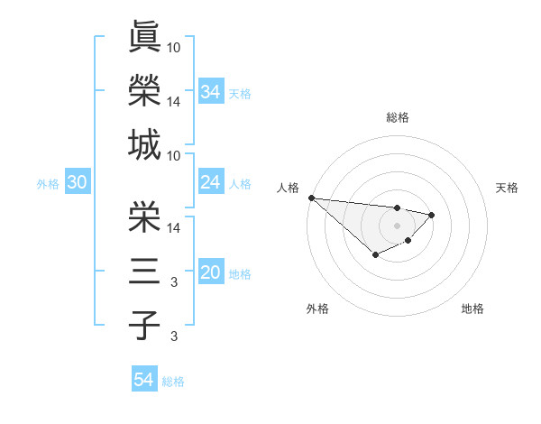 眞榮城 栄三子さんの地格は20画の1点