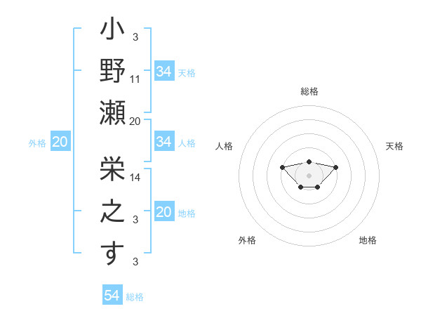 小野瀬 栄之すさんを姓名の画数から五運を鑑定