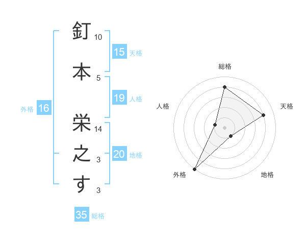 釘本 栄之すさんを姓名の画数から五運を鑑定