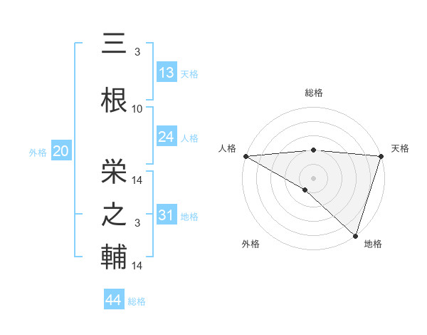 三根 栄之輔さんを姓名の画数から五運を鑑定