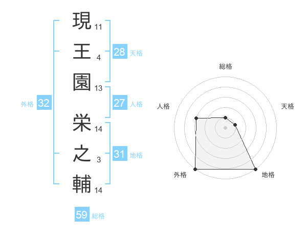 現王園 栄之輔さんを姓名の画数から五運を鑑定