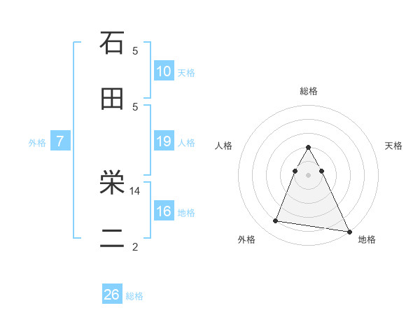 石田 栄二さんの総格は26画の2点!