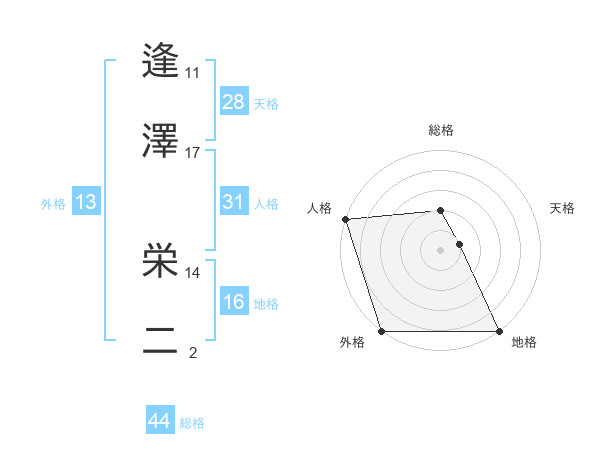 逢澤 栄二さんの外格は13画の5点!