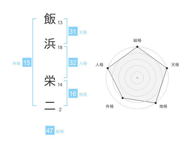 飯浜 栄二さんの外格は15画の4点!
