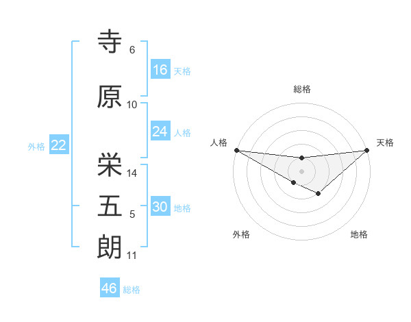 寺原 栄五朗さんの天格は16画の5点!
