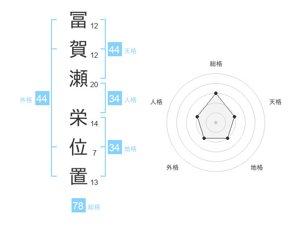 冨賀瀬 栄位置さんの総格は78画の3点!