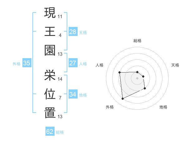 現王園 栄位置さんの天格は28画の1点