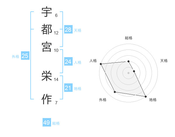 宇都宮 栄作さんの地格は21画の5点!