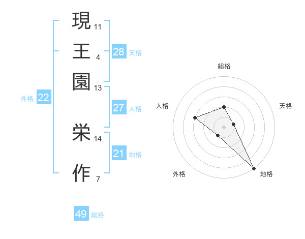 現王園 栄作さんを姓名の画数から五運を鑑定