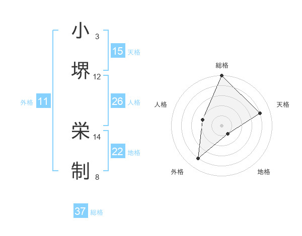 小堺 栄制さんの総格は37画の5点!