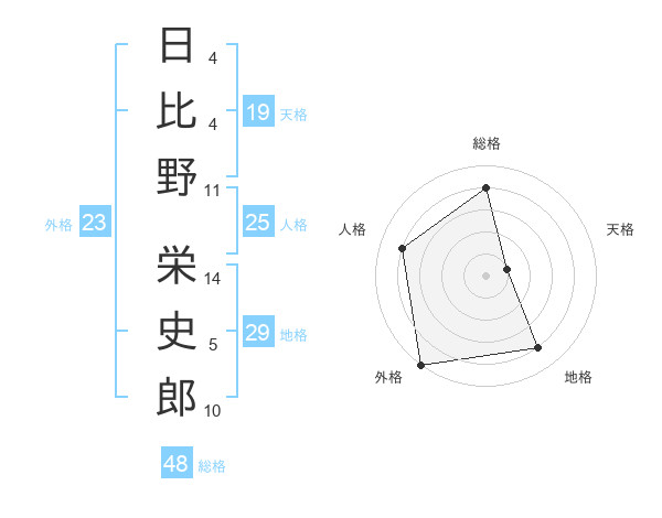 日比野 栄史郎さんを姓名の画数から五運を鑑定